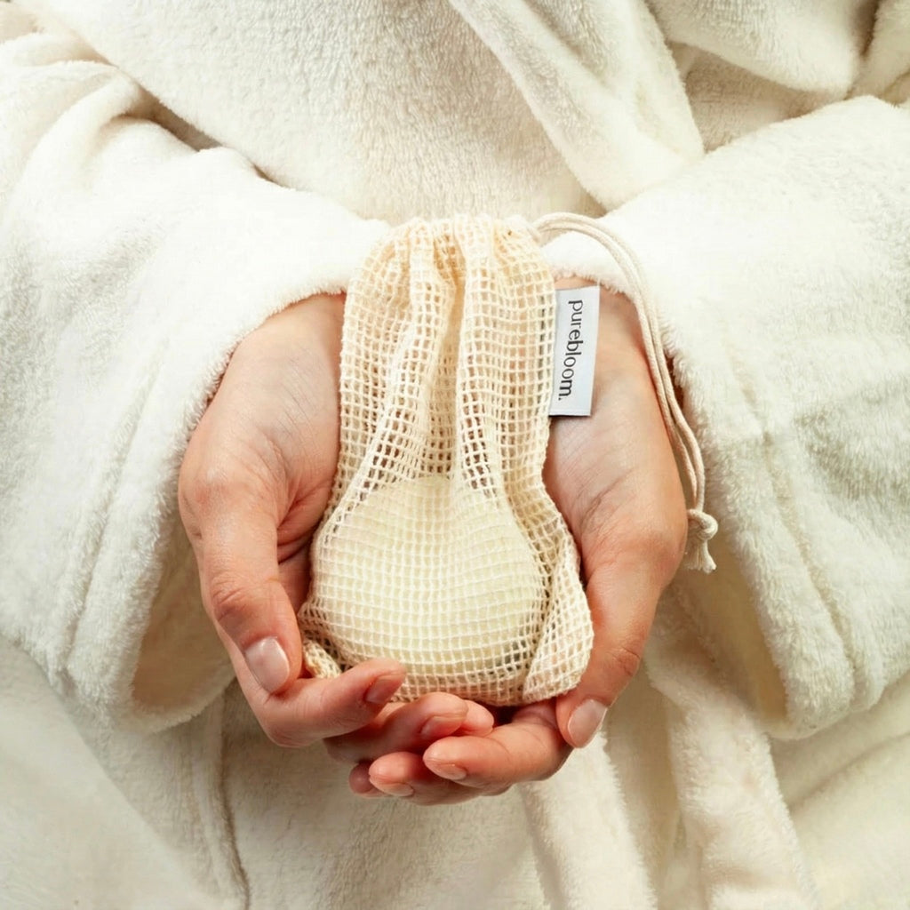 Παρατείνετε την διάρκεια ζωής κάθε μπάρας σας και απολάυσε αφρό της με την βαμβακερή τσάντα της PureBloom.