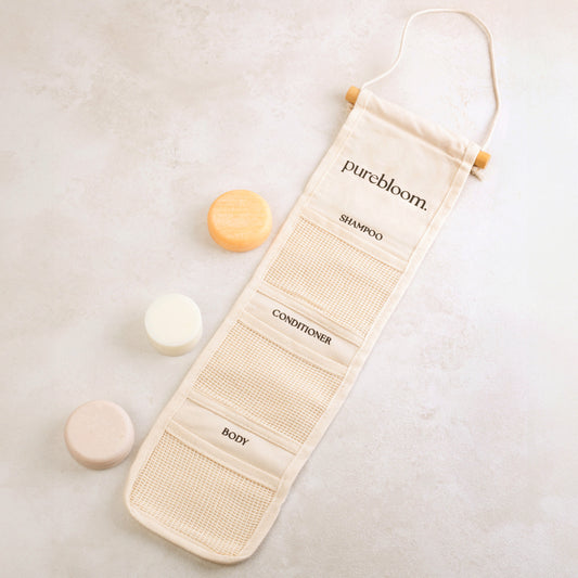 Purebloom Shower Routine Set (Σαμπουάν, Conditioner, Αφρόλουτρο, Βαμβακερή Τσάντα, Μεταλλικό Κουτί, Βάση μπάρας)